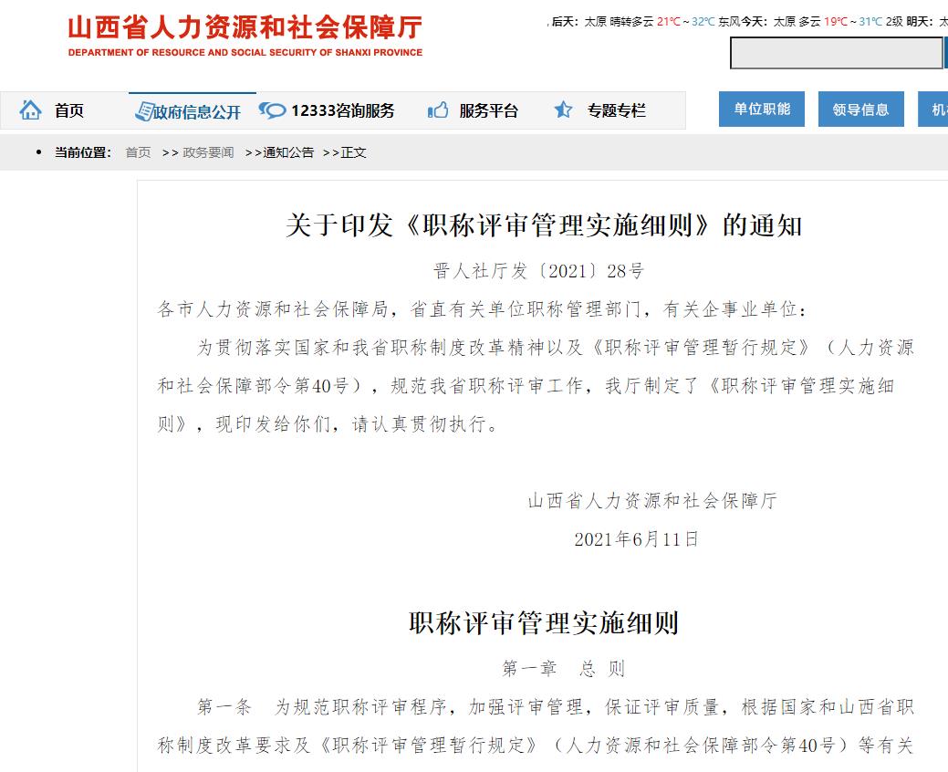 關(guān)于印發(fā)《職稱評審管理實施細(xì)則》的通知 晉人社廳發(fā)〔2021〕28號